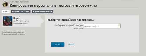 Теперь вы можете скопировать своего персонажа на ПТР из русского игрового мира, имея русскоязычную учетную запись. Можно предпологать, что это делают специально для нового дополнения Туманы Пандарии. Также при переносе персонажа вам предлагают выбрать уже готовый шаблон персонажа Метки: |