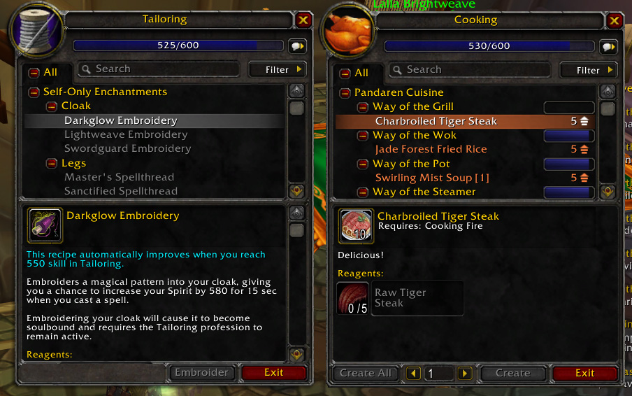 | Обновление интерфейса в бете Mists of Pandaria: - профессии были разделены по группам, как для кулинарии, так и для других профессии; - появилась возможность добавлять в чёрный список поля сражений; - добавлено окно лута, которое позволяет вам увидеть, кто, сколько выбросил и кто получил добычу; - изменили книгу заклинаний, теперь она стала более удобная, хотя старая мне больше нравится; - также обновлён Атлас подземелий, в него добавили подземелья Классики, BC, WOTLK и MoP. Все изменения можно увидеть на изображениях снизу Метки: |